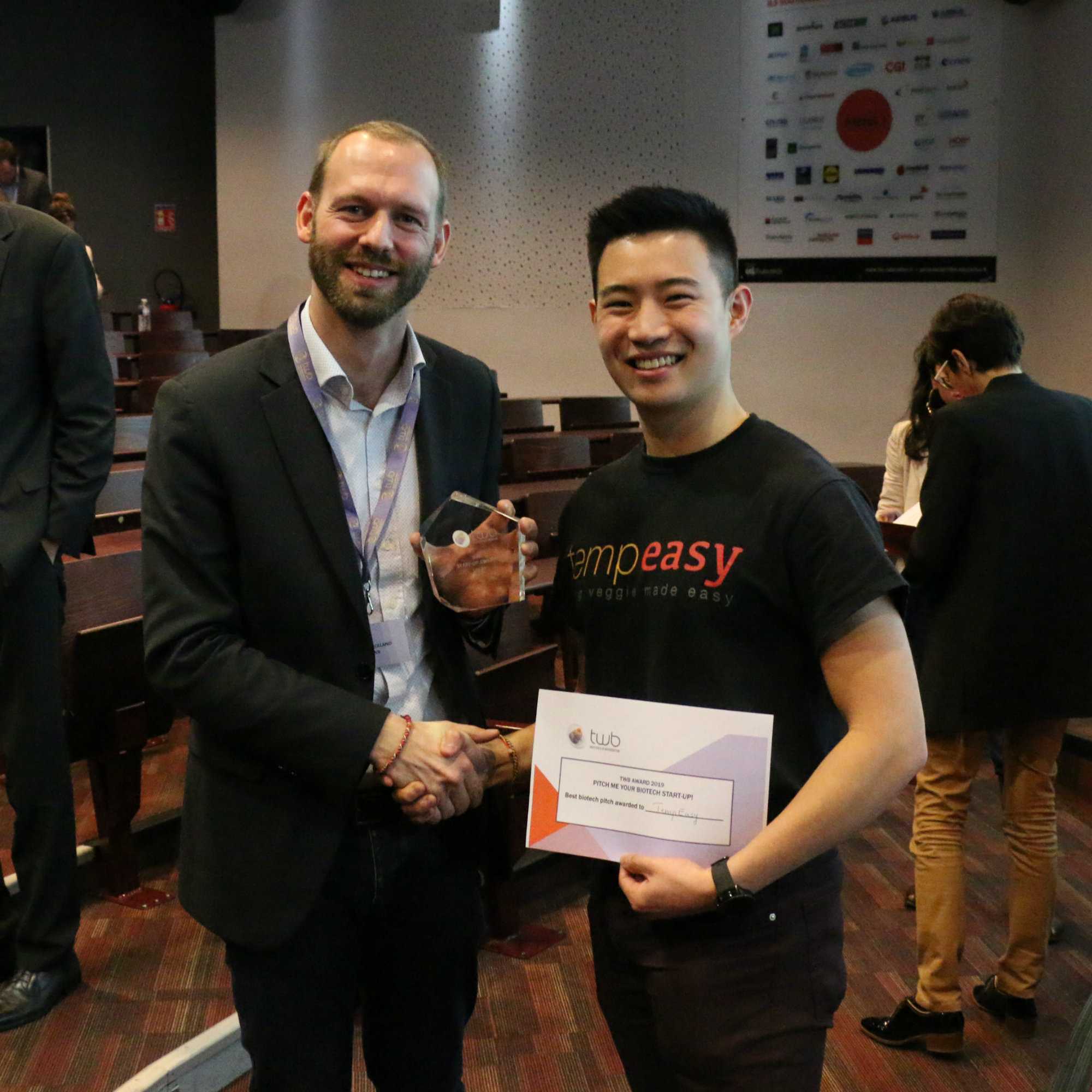 At each event, TWB organises a competition in which all European biotech start-ups of 5 years or more, offering differentiating and innovative solutions, may participate. This year the candidates were: EvologicTechnologies (AT), KaffeBueno (DK), Matrika (FR), MOGU (IT), TempEasy (UK). Facing a jury of experts (mainly composed of investors), the five start-ups made their pitch in 5 minutes.