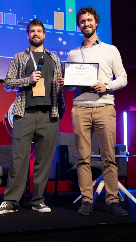 Mathilde Cecchi, co-founder and CEO of inLux Biotech.InSpek wins over the Start me up! audience