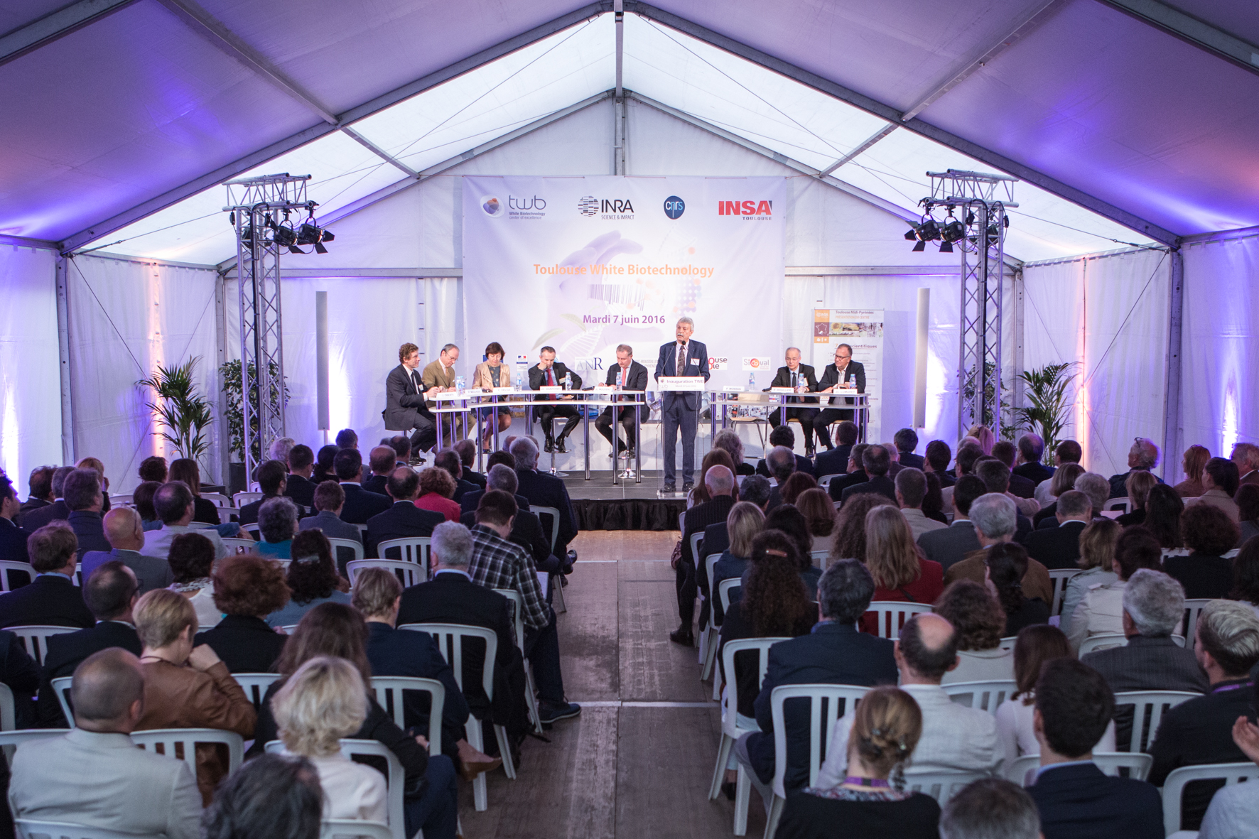 Pierre Monsan, Directeur fondateur de TWB, a ouvert la cérémonie en remerciant l'ensemble des acteurs politiques, institutionnels, académiques et industriels pour leur soutien et leur confiance en TWB. Il a défini le rôle fédérateur du démonstrateur comme "un jaune d'œuf qui permet de faire prendre la mayonnaise entre la recherche et les industries". Après un rapide historique, il a développé les perspectives de développement de la structure qui ne cesse de croître depuis sa création en 2012 avec plus de 57 projets de R&D à son actif. Tous les intervenants ont ensuite tour à tour réaffirmé leur soutien indéfectible à TWB, considéré comme un modèle d'excellence en matière d'innovation et de valorisation de la recherche publique. 220 participants (partenaires du consortium de TWB, industriels, chercheurs des laboratoires associés, membres des tutelles de TWB -INRA, INSA, CNRS-, institutionnels et politiques, personnels de TWB) ont assisté à la cérémonie qui s'est terminée par un buffet convivial.